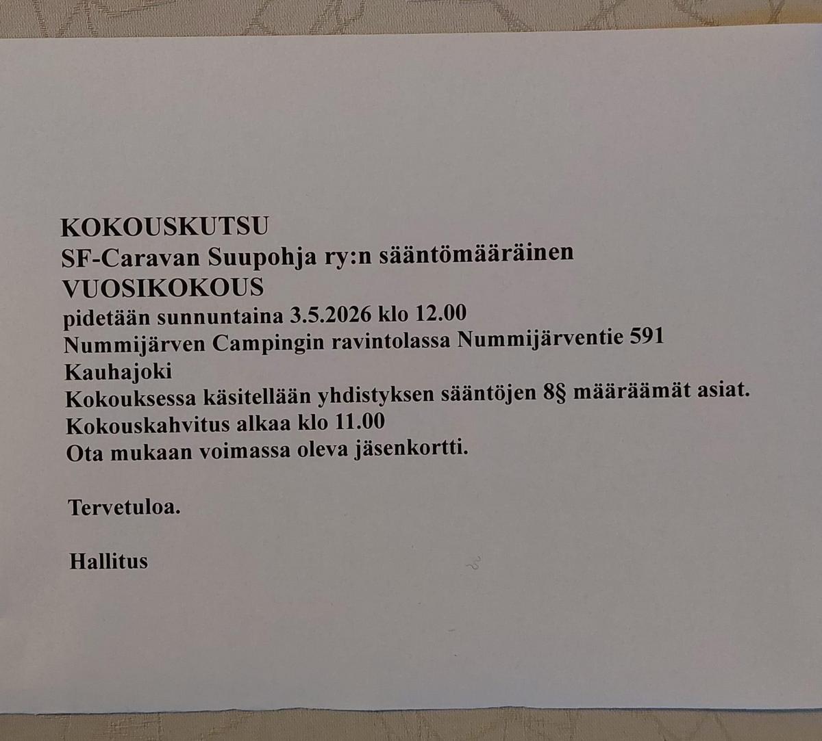 Liittymällä Sf Caravan Suupohja ry:n 024 jäseneksi saat kaikki valtakunnaliset SF Caravan ry:n antamat jäsenedut mm. lehdet 6 numeroa/vuosi ja leirintäoppaan ym.